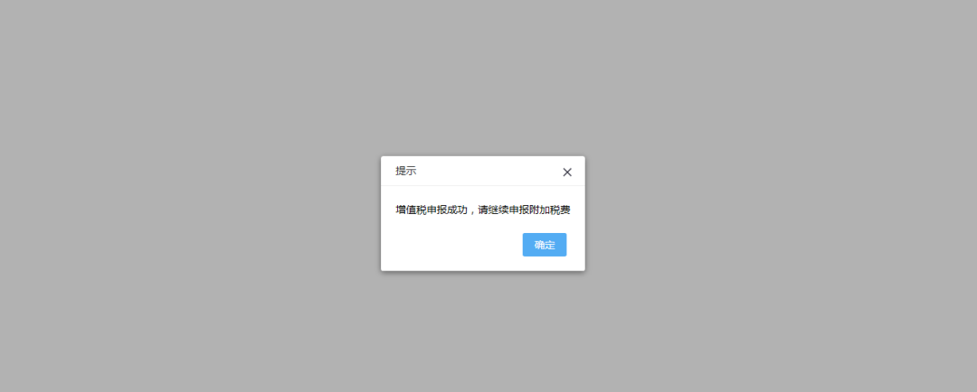 4)增值稅申報成功后,系統返回增值稅申報成功,點擊【確定】按鈕可進行附加稅申報;