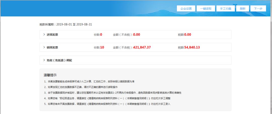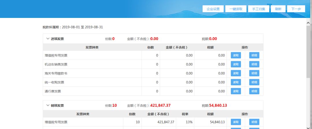 (2)進入發票匯總界面后,系統自動獲取當期所有的進銷項發票數據;
