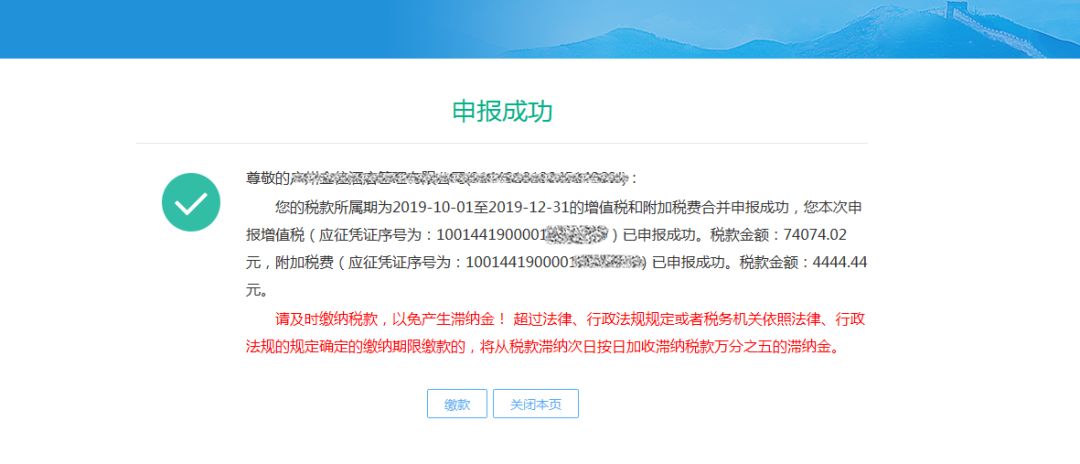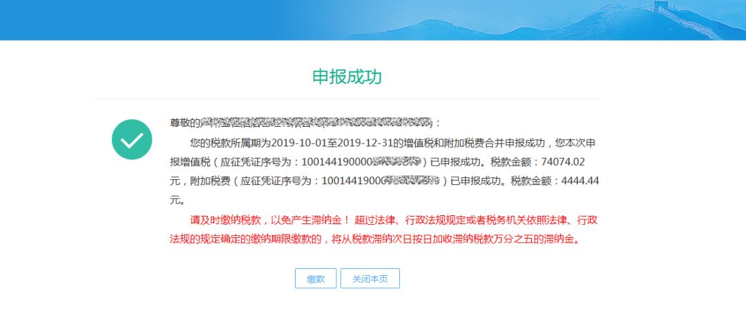 6)系統返回申報成功回執。