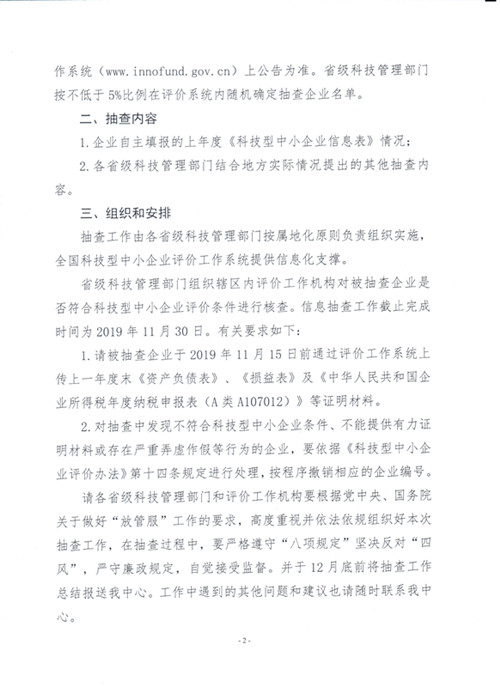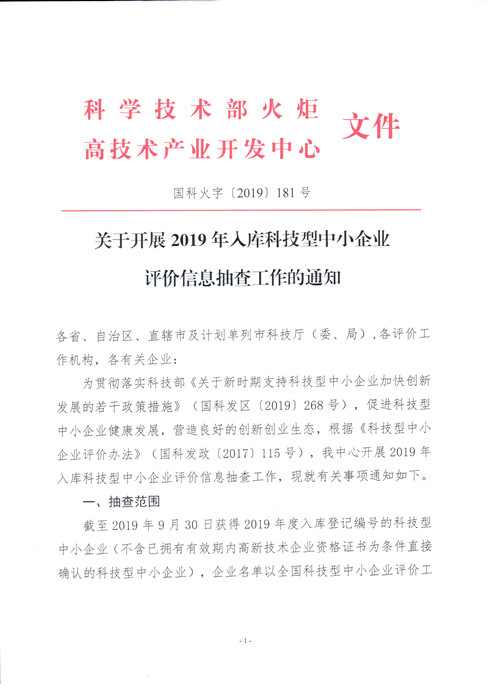 關于開展2019年入庫科技型中小企業評價信息抽查工作的通知